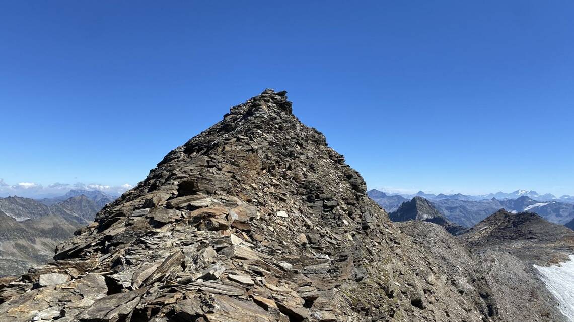 Und jetzt stand er da. Auf einer Hochtourenwanderung zum Rheinquellhorn in den Bündner Alpen. Ein schmaler Grat mit steilen Abhängen links und rechts.